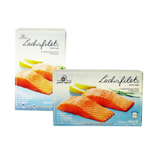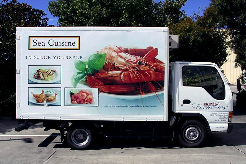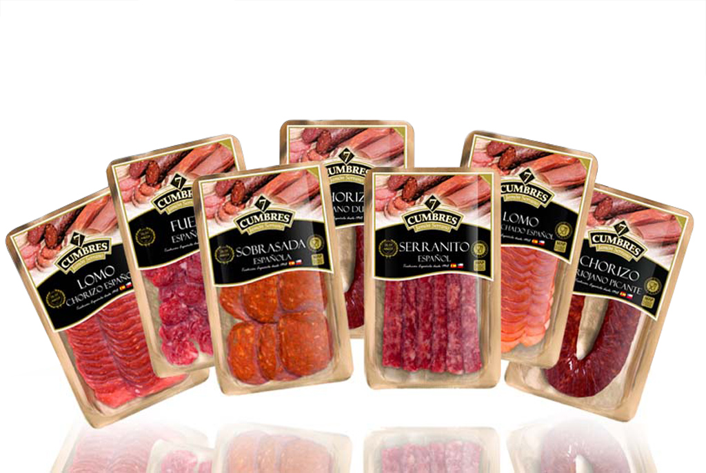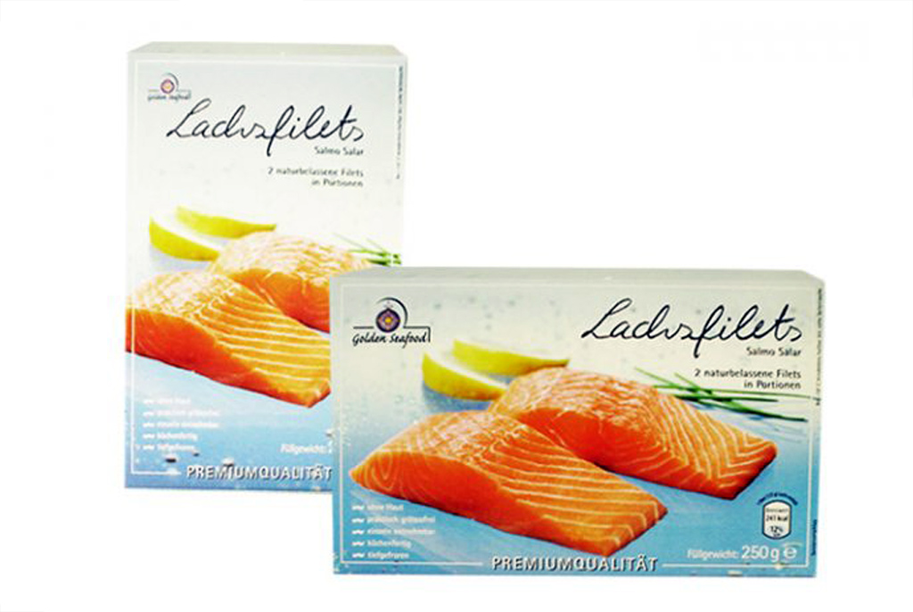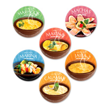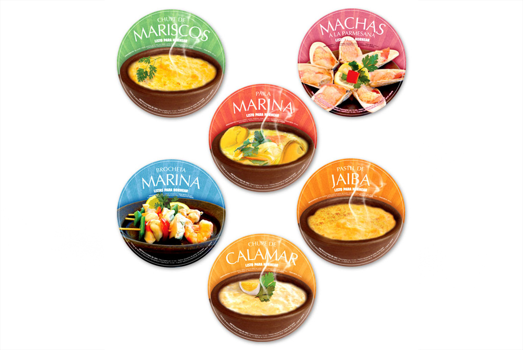 Línea de etiquetas productos del mar. Impresión sobre polipropileno más laminado que protege la humedad en cámaras de frio.