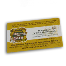 Línea de productos como miel y sus derivados.Impresión a 2 colores más folia dorada.
